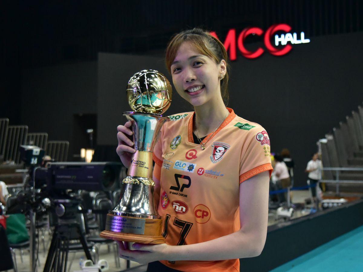 Lý Thị Luyến tươi “roi rói” cùng chức vô địch giải VĐQG Thái Lan 2025-2026. Ảnh: Nakhon Ratchasima
